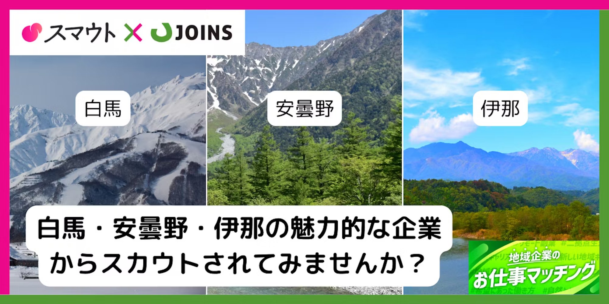 今回みなさんをサポートするのは、お仕事をサポートとして地域にある地元企業のお仕事をご紹介する「JOINS」そして移住情報に関しては、「スマウト」がサポートします。